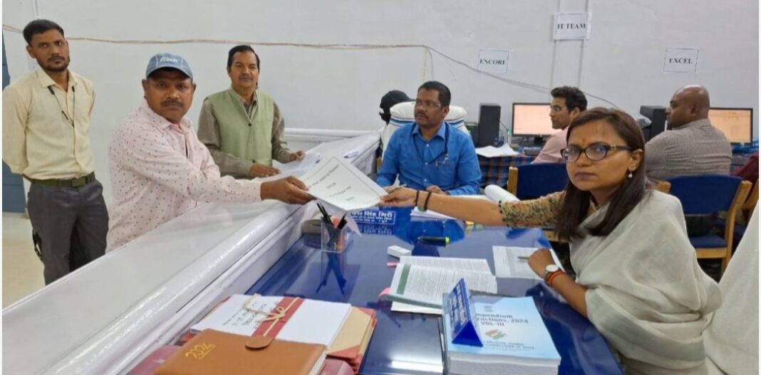 दुर्ग : न्यूज़ 36 : लोकसभा चुनाव-2024 के तृतीय चरण के अंतर्गत नामांकन जमा करने के प्रथम दिवस संसदीय क्षेत्र 07 दुर्ग के लिए एक नामांकन जमा हुआ। श्याम सुंदर साहू लोकतंत्र कांग्रेस पार्टी से नामांकन जमा किया। आज जिनके नाम से नामांकन पत्र खरीदे गए उनमें हरिश्चंद्र निर्दलीय, सुखदेव टंडन राष्ट्रीय जर्नलिस्ट पार्टी, अरुण कुमार जोशी निर्दलीय, श्याम सुंदर साहू लोकतंत्र कांग्रेस पार्टी, शंकर ठाकुर गोंडवाना गणतंत्र पार्टी, विजय बघेल भा.ज.पा., हरिश्चंद्र ठाकुर निर्दलीय, अनूप कुमार पांडे निर्दलीय, बलदेव सिंह साहू निर्दलीय, यशवंत कुमार साहू भारतीय शक्ति योजना पार्टी, अलीहुसेन सिद्दकी निर्दलीय, विकास शर्मा निर्दलीय, राजेन्द्र साहू इंडियन नेशनल कांग्रेस, सविता बंजारे शक्ति सेना भारत देश, पुष्पा मेरिया निर्दलीय और अंशिका जैन निर्दलीय शामिल है।