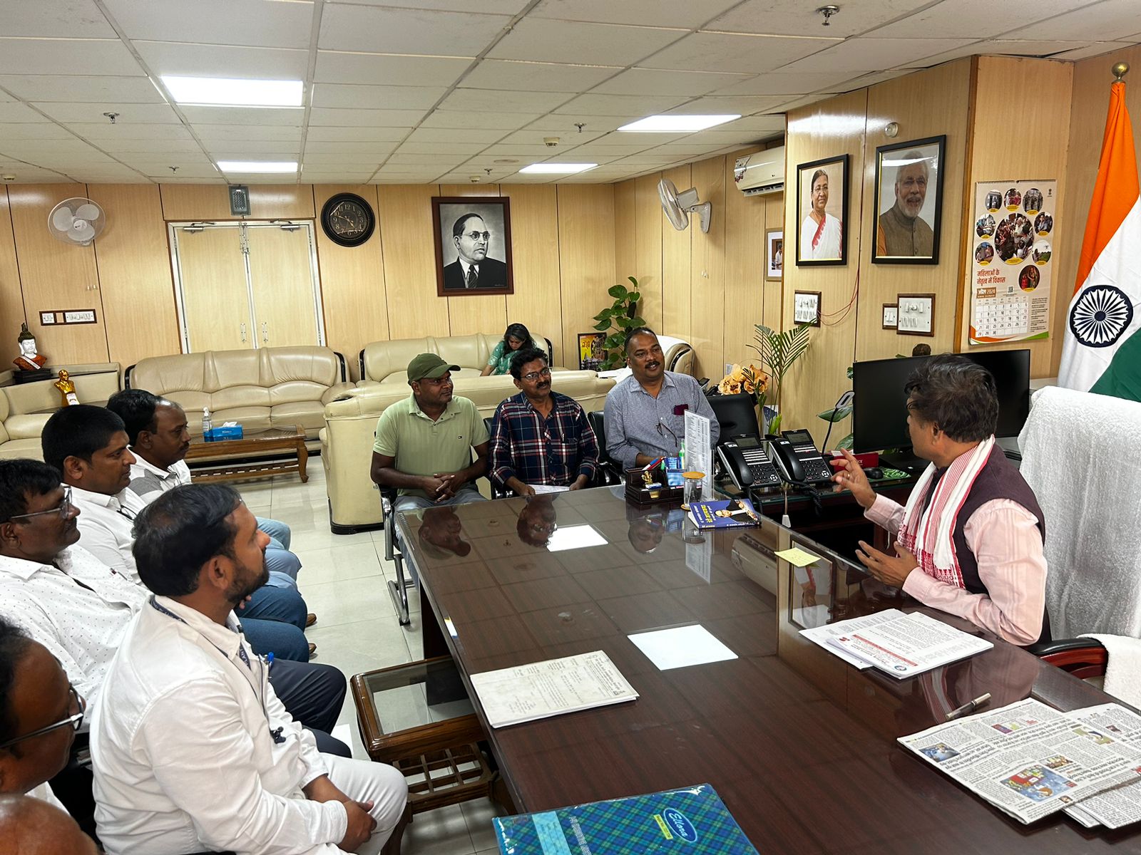 इस सदर्भ में भिलाई इस्पात संयंत्र एससी एसटी इम्प्लाइज एसोसिएशन भिलाई के अध्यक्ष आनदं रामटेके के साथ प्रतिनिधि मंडल अनुसुचित जाति राष्ट्रीय आयोग अध्यक्ष किशोर मकवाना व अनुसुचित जनजाति राष्ट्रीय आयोग अध्यक्ष अतंर सिंह आर्य भारत सरकार दिल्ली जाकर अवगत कराते हुए डॉ बाबा साहेब अम्बेडकर प्रतिमा शौदर्यीकरण कार्य भिलाई इस्पात संयंत्र प्रबंधन अतिशीघ्र प्रारंभ करें। तथा साथ ही भिलाई इस्पात संयंत्र में कार्यरत एससी /एसटी कर्मचारियों व अधीकारीयों की मुल भुत समस्या से अवगत कराया गया। प्रतिनिधि मंडल में प्रमुख रूप से भिलाई इस्पात संयंत्र एससी/ एसटी इम्प्लाइज एसोसिएशन भिलाई के अध्यक्ष व सेल एससी/ एसटी इम्प्लाइज फैडरेशन केन्द्रीय जाइटंजनरल सेक्रेटरी आनदं रामटेके, भिलाई इस्पात संयंत्र एससी/ एसटी इम्प्लाइज एसोसिएशन के कार्यकारी अध्यक्ष दीनानाथ प्रसाद, भिलाई इस्पात संयंत्र एससी/ एसटी इम्प्लाइज एसोसिएशन भिलाई के प्रतिनिधि नेत्र पाल व सेल एससी/ एसटी इम्प फैडरेशन के राष्ट्रीय उपाध्यक्ष एम. के. अभिमन्यु,बोकारो यूनिट, जांइट जनरल सेक्रेटरी जय प्रकाश,रांची, बाबा मुन चन्द्रपुर महाराष्ट्र राष्ट्रीय आयोजन समिति, इदल पासवान सयुंक्त महासचिव, जगदीश छुरा, रचित कुमार प्रसाद अधीकार सदस्य, दिनेश रविदास बोकारो सहित प्रमुख एसोसिएशन व सेल एससी/ एसटी इम्प फैडरेशन केन्द्रीय प्रतिनिधि प्रमुख रूप से उपस्थित थे।