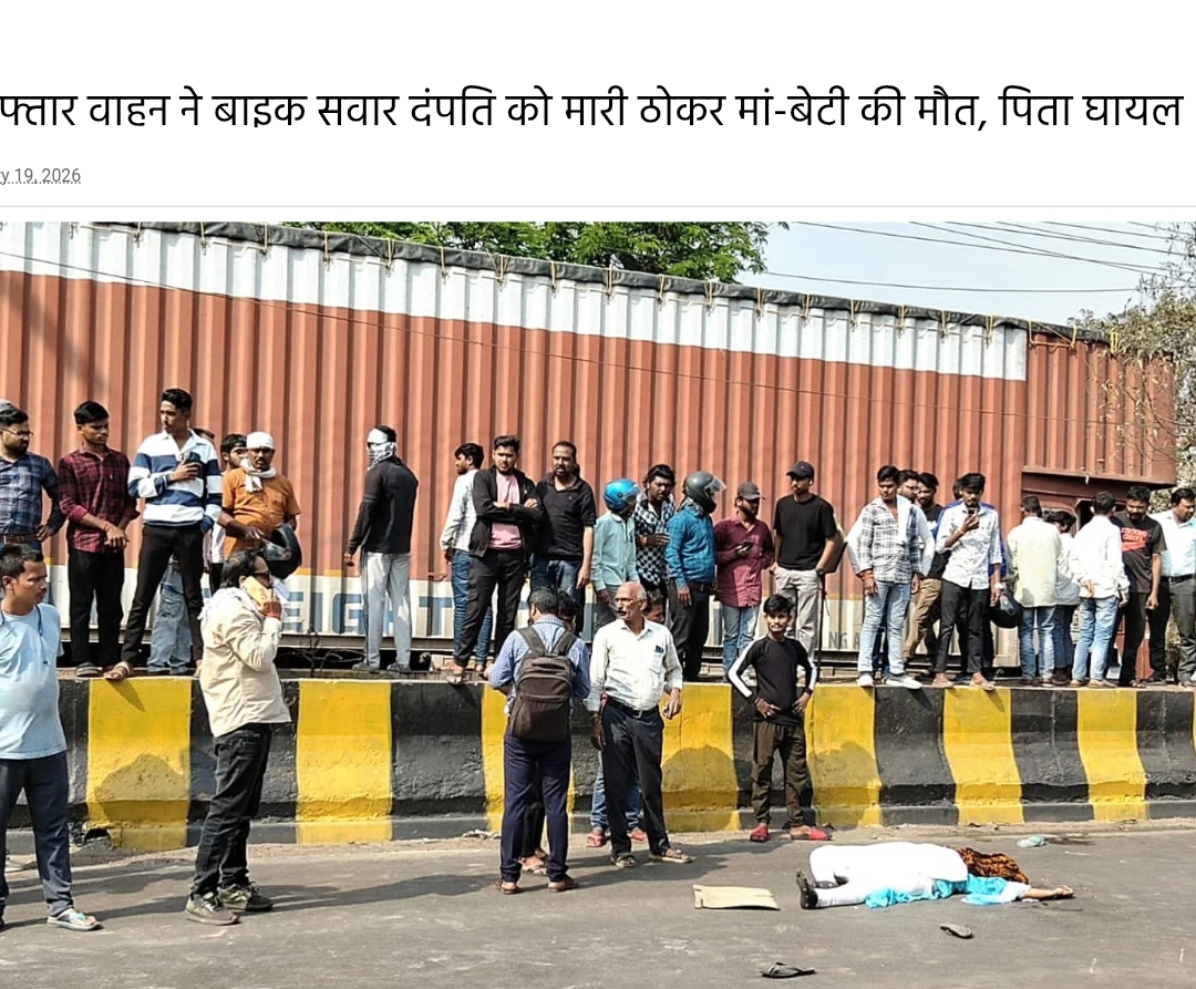 भिलाई : न्यूज़ 36 : पुरानी भिलाई थाना क्षेत्र के अंतर्गत नेशनल हाईवे रोड पर सिरसा गेट के प्रीमियम शराब दुकान के पास तेज रफ्तार अज्ञात वाहन द्वारा बाइक सवार दंपति को ठोकर मार दी। इस दुर्घटना में घटनास्थल पर बाइक सवार मां एवं 2 साल की मासूम बेटी की मौत लाल बहादुर शास्त्री अस्पताल सुपेला में हो गई। पुरानी भिलाई पुलिस के द्वारा अज्ञात वाहन के खिलाफ मामला दर्ज कर विवेचना की जा रही है।