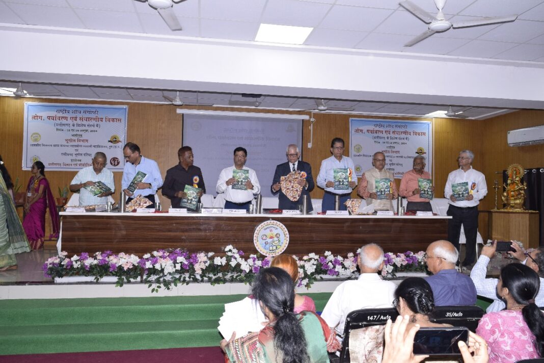 दुर्ग : न्यूज 36 : शासकीय विश्वनाथ यादव तमस्कर महाविद्यालय के भूगोल विभाग एवं छत्तीसगढ़ भूगोल परिवार के द्वारा लोग ,पर्यावरण एवं संधारणीय विकास पर दो दिवसीय राष्ट्रीय संगोष्ठी का आयोजन किया गया। संगोष्ठी के उद्घाटन सत्र में मुख्य अतिथि प्रोफेसर सच्चिदानंद शुक्ल, कुलपति ,पंडित रविशंकर शुक्ल विश्वविद्यालय रायपुर रहे। जिन्होंने अपने संबोधन में वातावरण के प्रति सभी को अपनी जिम्मेदारी समझनी होगी एवं पर्यावरण के प्रति अपने जीवन में अनुशासन लाना चाहिए। हमें अपना प्रत्येक कार्य राष्ट्रहित में करना चाहिए राष्ट्र सर्वोपरि होना चाहिए| सत्र के प्रमुख वक्ता प्रोफेसर सुरेश चंद राय ,दिल्ली विश्वविद्यालय दिल्ली ने अपने की नोट एड्रेस में बढती नगरीकरण से उत्पन्न समस्या एवं इसके समाधान पर विस्तृत रूप से प्रकाश डाला |
