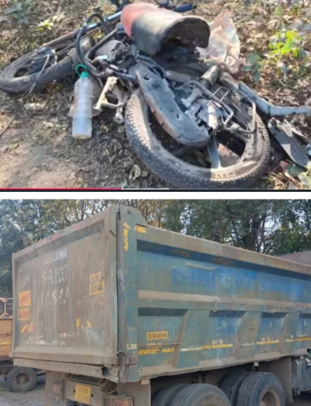 पुरानी भिलाई पुलिस के मुताबिक दोपहर को एक बाइक में सवार दो युक्ति एवं एक युवक पुरानी भिलाई से गनियारी जा रहे थे। दोपहर को करीब 2:15 के लगभग ग्राम सोनी रोड पर मेहंदी बाड़ी के पास हाईवा क्रमांक सीजी 04 एलएस 9146 के द्वारा तेज वाहन लापरवाही पूर्वक चलाते हुए मोटरसाइकिल को जोरदार ठोकर मार दी। मोटरसाइकिल होंडा CG07 BL9972 जिसको युवक सुमित धीवर 25 वर्ष, ग्राम फूंडा, पाटन चला रहा था। युवती भूमिका बंजारे 24 वर्ष ग्राम गर्नियारी की मौत हो गई। दोनों के शवों को मर्चुरी भेजा गया।