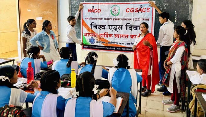 भिलाई : आज आनंद शिक्षण संस्था भिलाई जिसके अध्यक्ष – जयप्रकाश भवसागर, प्रॉजेक्ट डायरेक्टर – अविनाश भवसागर, प्रोजेक मैनेजर – डॉली सिंह, M&E – मनीष सिन्हा, काउंसलर – संगीता साहू और रश्मि सोनी, हेमलता साहू, सरोज बोरकर के साथ अन्य सभी कार्यकर्ताओं के द्वारा 1 दिसंबर विश्व एड्स दिवस के उपलक्ष में समुदायों को नेतृत्व करने दें के थीम को ध्यान में रखते हुए एचआईवी एड्स की रोकथाम के लिए लोगों को जागरूक किया गया.
