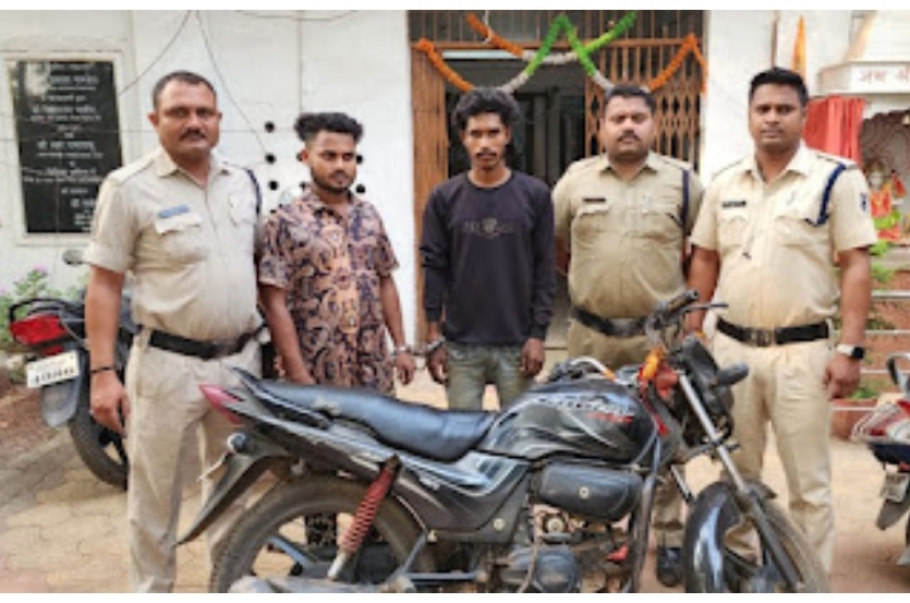 भिलाई : न्यूज़ 36 : लिफ्ट लेने के बाद लिफ्ट देने वाले अजय यादव की ही बाइक चोरी करने वाले दोनों बदमाश विपिन कुमार उर्फ राजा व राहुल विश्वकर्मा को खुर्सीपार पुलिस ने गिरफ्तार किया है। दोनों आरोपी ट्रांसपोर्ट नगर के पास है पीड़ित की बाइक पर बैठकर श्री राम चौक खुर्सीपार पहुंचे। चौक पर पीड़ित बाइक में चाबी लगी छोड़कर एक दुकान पर गया, इसी दौरान दोनों उसकी बाइक लेकर फरार हो गए। पीड़ित ने खुर्सीपार थाने में इसकी शिकायत की थी। शुक्रवार को छठ तलाब मंच के पास वाहन चेकिंग के दौरान पुलिस ने दोनों को चोरी के वाहन के साथ गिरफ्तार किया है। आरोपियों के खिलाफ चोरी की धारा के तहत कार्रवाई कर न्यायालय मे पेश किया गया, जहां से रिमांड पर जेल भेजा गया है। पुलिस ने बताया कि मंगल बाजार छावनी निवासी अजय 17 सितंबर को किसी काम से ट्रांसपोर्ट नगर गया था वहां से रात में खुर्सीपार जा रहा था रास्ते में साइ धर्म कांटा के पास दो युवक मिले और खुर्सीपार तक के लिए लिफ्ट मांगी। पीड़ित उन्हें लेकर श्रीराम चौक खुर्सीपार पहुंचा। वहां पर दोनों उसकी बाइक चोरी कर फरार हो गए थे। खुर्सीपार पुलिस छठ तलाब मंच के पास वाहन चेकिंग कर रही थी तभी छावनी निवासी आरोपी 23 वर्षीय विपिन और हनुमान मंदिर के पास छावनी निवासी 22 वर्षीय राहुल चोरी की बाइक से घूमते मिले।पुलिस ने वाहन चेकिंग के लिए रोका आरोपी से वाहन के दस्तावेज मांगे तो कोई भी दस्तावेज नहीं दिखा सके, इसके बाद उन्हें थाने लाकर पूछताछ की गई तो आरोपियों ने महीने भर पहले लिफ्ट लेने के बहाने से वाहन चोरी करने के बात स्वीकारी।