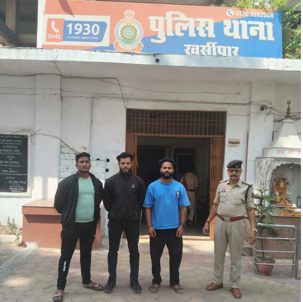 हरिओम चौधरी (23 वर्ष), निवासी हाथखोज भिलाई,,विकास सिंह (27 वर्ष), निवासी खुर्सीपार,विक्की विश्वकर्मा (30 वर्ष), निवासी कैंप-01 छावनी