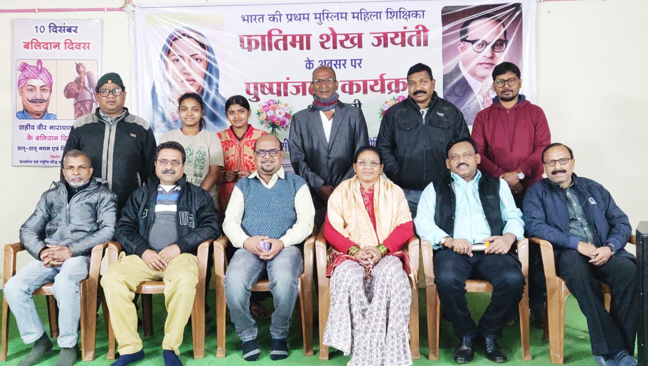 भिलाई : न्यूज़ 36 : बीएसपी,एससी,/एस टी एम्पलाइज एसोसिएशन भिलाई के द्वारा अम्बेडकर प्रेरणा स्थल मे एक प्रमुख भारतीय समाज सुधारक और देश की पहली मुस्लिम महिला शिक्षिका और क्रांतिकारी फातिमा शेख जी की जयंती मनाई गई l सर्वप्रथम एसोसिएशन के अध्यक्ष कोमल प्रसाद एवं एसोसिएशन के सभी पदाधिकारियों द्वारा फातिमा शेख के चित्र पर माल्यार्पण कर पुष्पांजलि अर्पित की गई l