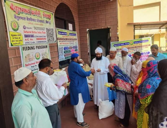 बैतुलमाल वेलफेयर सोसाइटी भिलाई ने पिछले साल की तरह रमजान माह के दौरान मुस्लिम  कम्युनिटी हॉल सेक्टर-6 और विवेकानंद नगर में आइडियल पब्लिक स्कूल के पास गरीबों एवं जरूरतमंदों को राशन किट वितरण  किया। इसकी शुरुआत जामा मस्जिद सेक्टर-6 के इमाम खतीब हाफिज इकबाल अंजुम हैदर के हाथों की गई। बैतुलमाल कमेटी के तमाम ओहदेदार इस मौके पर मौजूद थे।