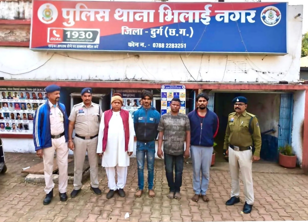 गिरफ्तार आरोपी के नाम : 1. पुरुषोत्तम सिंह ठाकुर उम्र 21 वर्ष, सा. कैपिटल सिटी रायपुर,2. अब्दुल मुकीम उम्र 18 वर्ष, सा. कैपिटल सिटी रायपुर 3. उचाला बैरागी उम्र 35 वर्ष सा. बैरागी मोहल्ला, छावनी भिलाई,4. राम कृष्ण निवासी नंदिनी रोड भिलाई
