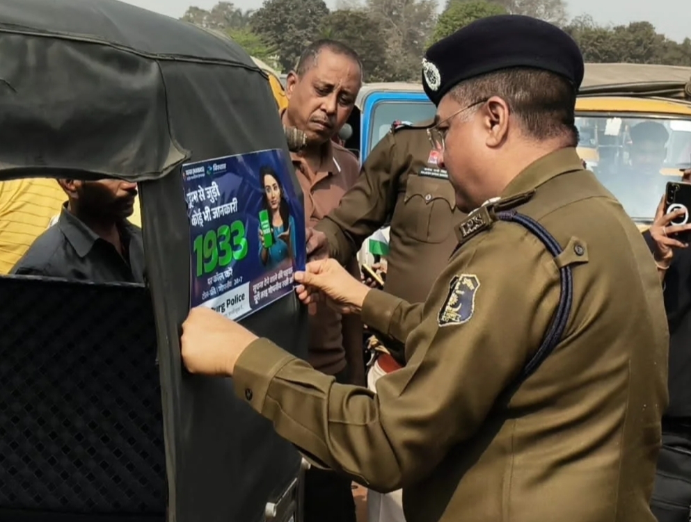 जन-जागरूकता अभियान के तहत दिनांक 04 फरवरी 2026 को दुर्ग-भिलाई शहर में संचालित लगभग 500 ई-रिक्शा में टोल फ्री नंबर 1933 चस्पा किया गया। इस अवसर पर वरिष्ठ पुलिस अधीक्षक, जिला दुर्ग विजय अग्रवाल द्वारा ई-रिक्शा को हरी झंडी दिखाकर रवाना किया गया। इसके साथ ही जिले के समस्त पुलिस वाहनों में भी यह टोल फ्री नंबर प्रदर्शित किया गया है, ताकि अधिक से अधिक नागरिकों तक इसकी जानकारी पहुंच सके। दुर्ग पुलिस का मानना है कि आम जनता की सक्रिय भागीदारी से नशे के अवैध नेटवर्क पर प्रभावी नियंत्रण संभव है।