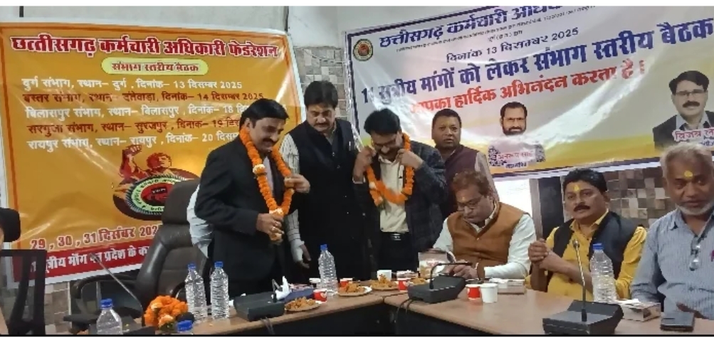 दुर्ग : न्यूज़ 36 : छत्तीसगढ कर्मचारी अधिकारी फेडरेशन दुर्ग संभाग की एक सभा 13 दिसंबर को स्थानीय जनपद पंचायत के सभाकक्ष में फेडरेशन के प्रांतीय संयोजक कमल वर्मा के अध्यक्षता में आहूत की गई थी। जिसमें विशिष्ट रूप से प्रांतीय सचिव एवं दुर्ग संभाग प्रभारी राजेश चटर्जी, लिपिक संध प्रांताध्यक्ष संजयसिंह, प्रदेश लिपिक संध प्रांताध्यक्ष रोहित तिवारी, स्वास्थ्य एवं बहुददेशीय कर्मचारी संध प्रांताध्यक्ष पंकज पांडेय, मनोज कुमार साहू प्रांताध्यक्ष शालेय शिक्षक संध, संताष वर्मा कार्यकारी अध्यक्ष संचालनालय विभागाध्यक्ष कर्मचारी संध, संभागीय अध्यक्ष आनंद कुमार श्रीवास्तव, जिला संयोजक कर्मचारी अधिकारी फेडरेशन दुर्ग विजय लहरे, राजपत्रित अधिकारी संध जिलाध्यक्ष रूपेश पांडेय, अनुरूप साहू महासचिव कर्मचारी अधिकारी फेडरेशन उपस्थित थे।