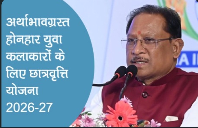 योजना के लिए पात्रता एवं सामान्य शर्तें भी निर्धारित की गई हैं। आवेदक छत्तीसगढ़ का मूल निवासी होना चाहिए तथा चिन्हारी पोर्टल में पंजीयन अनिवार्य है। आवेदक की आयु 15 वर्ष से कम और 30 वर्ष से अधिक नहीं होनी चाहिए। आवेदक अथवा उसके माता-पिता/अभिभावक की वार्षिक आय 72,000 रुपये से अधिक नहीं होनी चाहिए। आवेदन केवल निर्धारित प्रारूप में ही स्वीकार किए जाएंगे। चयनित विद्यार्थियों को नियमानुसार मासिक छात्रवृत्ति प्रोत्साहन राशि 5,000 रुपये से 10,000 रुपये तक प्रदान की जाएगी, जो डीबीटी/ई-पेमेंट के माध्यम सेसीधे खाते में अंतरित होगी। आवेदन स्वीकार करने की अंतिम तिथि 20 मार्च 2026 निर्धारित की गई है। लिफाफे पर स्पष्ट रूप से “अर्थाभावग्रस्त होनहार युवा कलाकारों/छात्रों के लिए छात्रवृत्ति योजना 2026-27” अंकित करना अनिवार्य होगा। विलंब से प्राप्त अथवा अपूर्ण आवेदन पर विचार नहीं किया जाएगा। योजना से संबंधित विस्तृत जानकारी विभागीय वेबसाइट www.cgculture.in पर उपलब्ध है।