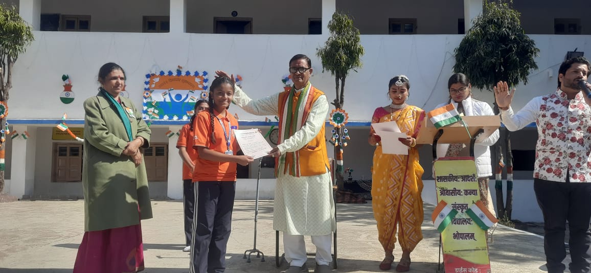 डॉ. शर्मा ने बताया कि मध्यप्रदेश के 42 जिलों की 333 बच्चियां यहां संस्कृत माध्यम पढ़ाई कर रही हैं रही हैं और संस्कृत और संस्कृति को अपने आचरण में ढाल रहीं हैं। कक्षा 6 से 12 तक की कक्षाओं में अध्ययनरत इन बच्चियों को न केवल भोजनावास नि: शुल्क है, साथ ही स्मार्ट क्लास, पुस्तकें, पुस्तकालय, स्टीम लैब, एन.सी.सी., रायफल शूटिंग और रेंज आदि की भी नि: शुल्क सुविधाएं हैं। बालिकाओं की चौमुखी उन्नति हो रही है। सुदूर ग्रामीण, जनजाति और पिछड़े क्षेत्र की कन्याओं को सुसंस्कृत और सुशिक्षित किया जा रहा है। संस्कृत में आधुनिक विषय भी पढ़ाये जाते हैं। ऑनलाइन प्रवेश परीक्षा के बाद मेरिट लिस्ट के आधार पर प्रवेश दिया जाता है। ऐसी अनेक संस्थाओं के कारण आज गीता और नाट्यशास्त्र के माध्यम से हमारा प्रिय भारत राष्ट्र विश्व स्तर पर सम्मानित है। इस दौरान उन्होंने संस्कृत संस्था की सराहना की और प्रवीणता प्राप्त छात्राओं को पुरस्कृत कर आशीर्वाद दिये।