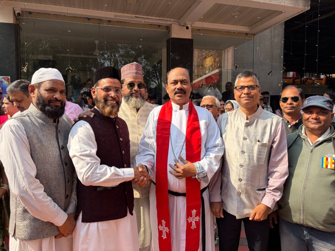 क्रिश्चियन कम्युनिटी चर्च सेक्टर-6 में बड़ी संख्या में अलग-अलग धर्म व संगठनों के प्रतिनिधि पहुंचे। सभी ने यहां सुबह की प्रार्थना और इसके बाद केक काटने के दौरान अपनी उपस्थिति दी। इसके बाद लौट रहे सभी परिवारों से मिल कर मुबारकबाद दी। क्रिश्चियन समुदाय ने भी अपने इन सभी मेहमानों के सम्मान में एक संक्षिप्त और गरिमामय आयोजन चर्च के सभागार में रखा, जहां सभी समुदाय के प्रतिनिधियों ने अपने-अपने विचार रखे और सामाजिक भाईचारा मजबूत करने पर बल दिया। चर्च की ओर से रेव्ह तर्पण अरुण, रेव्ह सुनील एस जॉन, रेव्ह सलीम खलखो, रेव्ह एडिसन सागर, पास्टर राजीव अर्नाल्ड, पास्टर अजय लारेंस, पास्टर राजेंद्र साहू और पास्टर एस चंद्रशेखर सहित मसीही परिवारों ने सभी मेहमानों का आभार जताया।