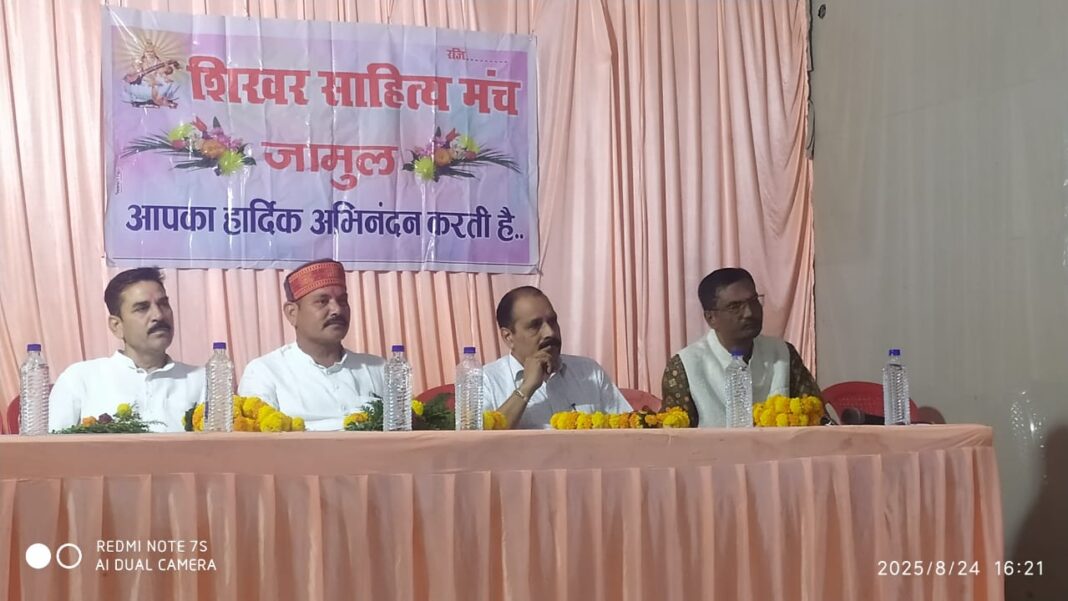 भिलाई : न्यूज़ 36 : शिखर साहित्य मंच जामुल के तत्वावधान में काव्य गोष्ठी का आयोजन रविवार को वार्ड क्रमांक -1 मठ पारा जामुल में किया गया। मुख्य अतिथि ईश्वर सिंह ठाकुर अध्यक्ष नगर पालिका परिषद थे। अध्यक्षता नरेन्द्र सिक्केवाल पुलिस अधीक्षक सी आई डी ने की और विशिष्ट अतिथि गोविन्द पाल अध्यक्ष मुक्त कंठ साहित्य समिति भिलाई तथा करीम खान महामंत्री जिला ग्रामीण कांग्रेस थे। अतिथियों ने मां सरस्वती एवं छत्तीसगढ़ महतारी की चरणों में श्रद्धा के दीप प्रज्ज्वलित कर कवि गोष्ठी का शुभारंभ किया। भिलाई की कवयित्री नीलम जायसवाल ने सरस्वती वंदना प्रस्तुत की। कार्यक्रम के संयोजक जामुल के वरिष्ठ कवि इस्माइल आजाद एवं कवयित्री प्रिया गुप्ता ने अतिथियों के सम्मान में स्वागत गीत प्रस्तुत किया। स्वागत समारोह का संचालन राजेन्द्र देवांगन ने किया। शिखर साहित्य मंच ने सभी अतिथियों को शाल श्रीफल एवं प्रतीक चिन्ह भेंट कर सम्मानित किया।
