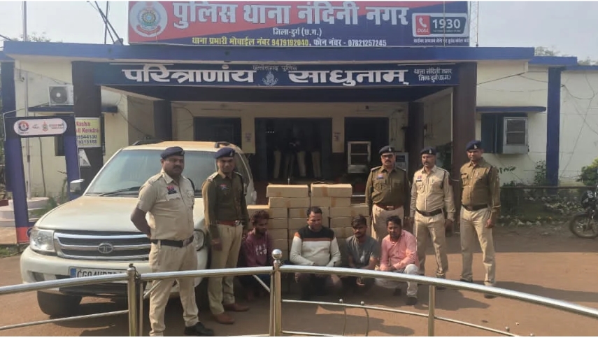 अतिरिक्त पुलिस अधीक्षक अभिषेक झा ने बताया कि 29 नवंबर को थाना नंदिनी नगर में धमधा मार्ग से नंदिनी कुंदिनी होते हुये दीगर राज्य से पुराना टाटा सफारी गाड़ी में अवैध शराब परिवहन कर कुछ लोगों के आने की मुखबीर द्वारा सूचना प्राप्त हुई।उक्त सूचना पर तत्काल थाना नंदिनी नगर की पुलिस टीम द्वारा मुखबिर के बताये रास्ते में रेड कार्यवाही कर आरोपीयान नरेश कुरें, लवकेश उर्फ बबलू, आर्यन कुमार लहरे एवं प्रभू बारले के कब्जे से 28 पेटी देसी शराब कीमती 1,34,400 रुपये,