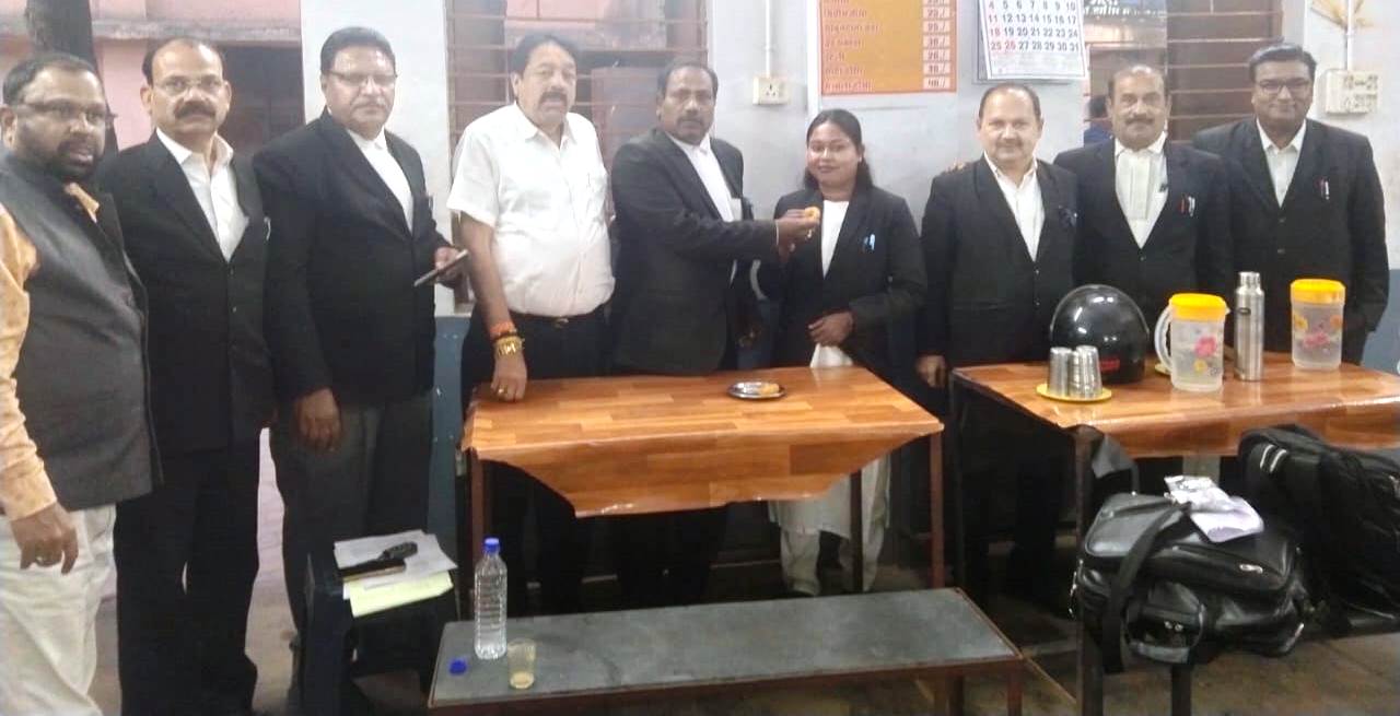 जिला अधिवक्ता संघ दुर्ग की पहल पर दुर्ग पहुंची जसोदा सिक्का का संघ के पूर्व अध्यक्ष गुलाब सिंह पटेल ने पुष्पगुच्छ देकर तथा मुंह मीठा करवाकर स्वागत किया।