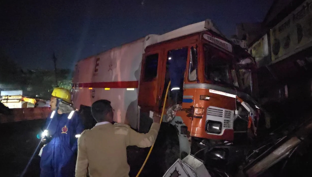 सूचना मिलते ही रात 2:20 बजे दो अग्निशमन वाहन रवाना किए गए। मौके पर पहुंचकर अग्निशमन कर्मियों ने देखा कि ट्रक ट्रांसफार्मर से टकराकर सर्विस रोड में उतर गया है और केबिन में आग लगी हुई है।