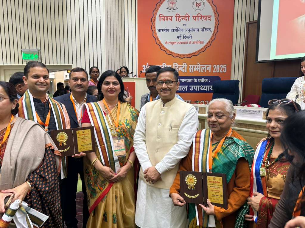 विज्ञान भवन में 21–22 नवंबर को विश्व हिंदी परिषद और भारतीय दार्शनिक अनुसंधान परिषद के संयुक्त तत्वावधान में “राष्ट्रीयता और मानवता के प्रतीक : पंडित दीनदयाल उपाध्याय” विषय पर यह दो-दिवसीय अंतरराष्ट्रीय आयोजन हुआ। इस सम्मेलन में अमेरिका की संस्था हिंदी-यूएसए और उसके सेंट लुईस शाखा के समन्वयक मयंक जैन को हिंदी भाषा और भारतीय संस्कृति के वैश्विक विस्तार में असाधारण योगदान के लिए “हिंदी सेवा सम्मान” तथा “हिंदी प्रतीक चिह्न सम्मान” से विभूषित किया गया। यह सम्मान लद्दाख के उपराज्यपाल कवींद्र गुप्ता के करकमलों प्रदान किए गए।