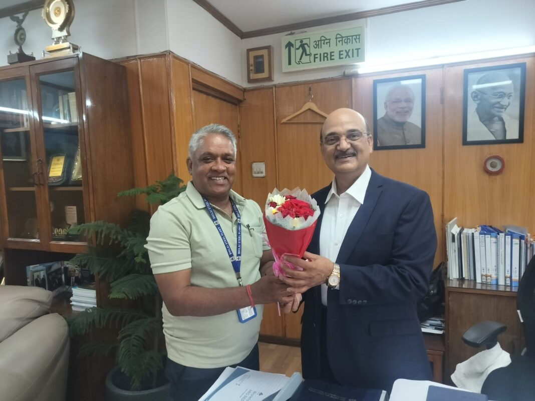 भिलाई : न्यूज़ 36 : स्टील अथॉरिटी ऑफ इंडिया लिमिटेड(सेल)के निदेशक(कार्मिक)के.के.सिंह ने 2 अप्रैल को अध्यक्ष सह प्रबंध निदेशक(सीएमडी)का अतिरिक्त प्रभार ग्रहण किया।इस खास अवसर पर इस्पात कर्मचारी को-ऑपरेटिव क्रेडिट सोसायटी लिमिटेड,सेक्टर-6 के अध्यक्ष और श्रमिक नेता बृज बिहारी मिश्र भी नई दिल्ली लोधी रोड स्थित सेल मुख्यालय पहुंच कर उन्हें शुभकामनाएं दी। मिश्र ने श्री सिंह को पुष्पगुच्छ और शॉल भेंट कर अपनी ओर से सम्मान और शुभकामनाएं व्यक्त कीं। श्री मिश्र ने कहा कि यह अवसर न केवल उनके लिए,बल्कि समस्त संगठन के लिए गर्व और विश्वास का प्रतीक था। सभा का वातावरण उत्साह,सम्मान और अपेक्षाओं से भरा हुआ था।हर चेहरे पर यह विश्वास झलक रहा था कि श्री सिंह का अनुभव और नेतृत्व क्षमता सेल को नई ऊँचाइयों तक ले जाएगा। उनके व्यक्तित्व में एक सहज दृढ़ता और कर्मठता की झलक स्पष्ट दिखाई देती है,जो इस नई जिम्मेदारी के लिए उन्हें पूर्णतः उपयुक्त बनाती है।