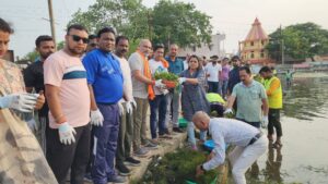 भिलाई : न्यूज 36 : रिसाली, कल्याणी मंदिर शीतला तालाब की सफाई करने दुर्ग ग्रामीण विधायक ललित चंद्राकर, आयुक्त मोनिका वर्मा ने श्रमदान किया। तालाब के भीतर फैली गंदगी को साफ कर जलीय पौध को बाहर निकाला। ‘कैच द रैन’ अभियान में निगम कर्मचारियों समेत 150 से अधिक आम लोगों ने सफाई के लिए श्रृंखला बनाई।