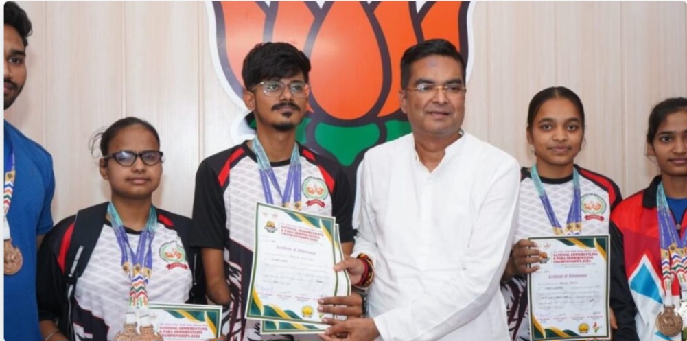 लेफ्ट हैंड कांस्य पदक, श्रीमंत झा 85+ किग्रा पुरुष पैरा स्टैंडिंग लेफ्ट हैंड स्वर्ण पदक, हर्ष कोडियर पैरा स्टैंडिंग जूनियर 60 किग्रा लेफ्ट हैंड स्वर्ण पदक, सीनियर 85 किग्रा लेफ्ट हैंड में स्वर्ण पदक, प्रीति यादव 65 किग्रा पैरा वि.आई राईट हैंड रजत तथा लेफ्ट हैंड रजत पदक, बिंदा यादव 70 किग्रा पैरा सिटिंग महिला राइट हैंड रजत पदक, राम खिलावन साहू 85 किग्रा पैरा स्टैंडिंग लेफ्ट हैंड रजत पदक, पर्लीन कौर 50 किग्रा पैरा वि.आई स्टैंडिंग राईट हैंड स्वर्ण और लेफ्ट हैंड स्वर्ण पदक, जी संदीप कुमार 65 किग्रा पैरा सिटिंग राइट हैंड कांस्य पदक, होरी लाल यादव 70 किग्रा पैरा सिटिंग लेफ्ट हैंड में कांस्य पदक विजेता को सम्मानित कर विधायक रिकेश सेन ने बधाई दी।
