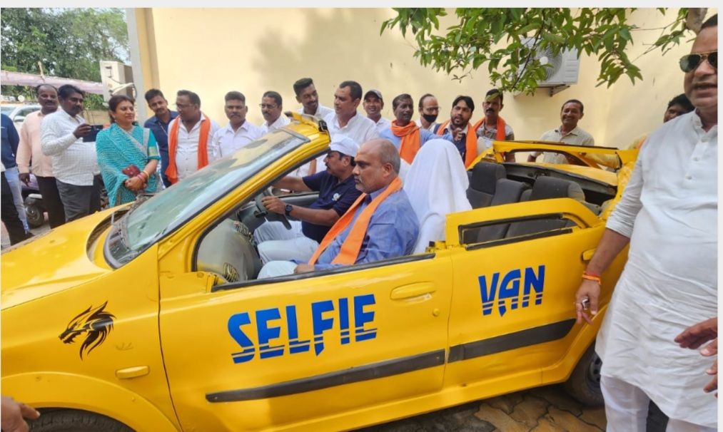 स्वच्छता की सेवा पखवाड़ा कार्यक्रम में शामिल हुए विधायक व सांसद साथ ही कबाड़ से बने सेल्फी कार में बैठे