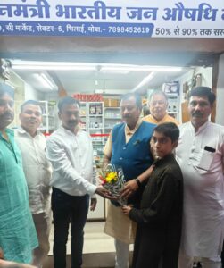 देश के हर नागरिक को स्वस्थ लाभ मिलता रहें प्रधानमंत्री नरेन्द्र मोदी जी ने सन् 2027 तक देश भर में और 25 हजार प्रधानमंत्री भारतीय जन औषधि केन्द्र खोलने का लक्ष्य रखा है। इसके तहत सेक्टर 6 सी मार्केट मे भी प्रधानमंत्री भारतीय जन औषधि का शुभारम्भ किया गया। इस परियोजना के अंतर्गत दो हजार सैंतालीस दवाओं और तीन सौ से ज्यादा सर्जिकल और चिकित्सा उपयोग सामाग्रियों का सुलभता से उपलब्ध कराने के लिए प्रायस किया जा रहा है। विशेष रूप से शुगर ,ब्ल्ड प्रेशर, और हृदय रोग, जैसी पुरानी बिमारियों के प्रावधान में यह महत्वपूर्ण भूमिका निभायेगी। सस्ती और गूणवत्ता पूर्ण जेनेरिक दवाइयां ब्रांडेड दवाओं की तुलना में 50% से 90% प्रतिशत तक कम दाम पर मिलेगी। ये खासतौर पर आर्थिक रूप से कमजोर परिवार के लिए विशेष रूप से फायदेमंद सिद्ध होगा। इस कार्यक्रम मे अशोक जैन, कामिनी जैन,केसर जैनअश्विन जैन कस्तुरी जैन ,पारस जैन ,विरेन्द्र साहु ,योगेन्द्र सिंह ,प्रकाश सांवत, कमलेश दुबे ,नितेश मिश्रा, रजनीकांत पाण्डेय ,दिनेश जायसवाल ,महेंद्र प्रताप सिंह (बबलू ),राकेश सिंह,नरेश यादव ,संजू सुदर्शन ,संजय सिंह,संतोष जायसवाल ,अरुण उपाध्याय ,शारदा गुप्ता ,निशु पाण्डेय नीलमणि मंडरिया,सहित व्यापारी गण अन्य गणमान्य नागरिक उपस्थित थे।