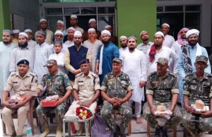 मरकजी मस्जिद पावरहाउस कैम्प-2 में नमाज इमाम हाफिज कासिम बस्तवी ने अदा कराई ओर अल्लाह से नेक इंसान बनकर जिंदगी गुजारने की ओर सुबा ओर मुल्क की तरक्की ओर कामयाबी अमन भाईचारे की दुआ की। मस्जिद के सेक्रेटरी सैय्यद असलम ने बताया कि नमाज़ बाद पुलिस प्रशासन के सब इंस्पेक्टर ओर पुलिसकर्मी को कमेटी के सदर मोहम्मद असलम ने पुष्प भेंट कर सम्मानित किया ओर सेवाई खिलाई गई ओर पुलिसकर्मी के परिवार के लिए भी तोहफा में सेवाई,मेवा ओर ड्राइ फ्रूट्स भेट किया गया।