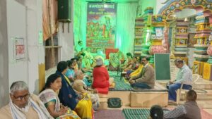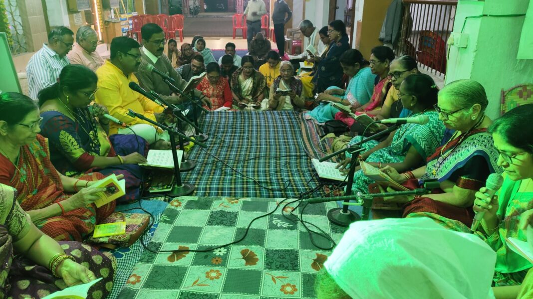 शाम के सत्र में श्रीमद भगवद गीता के 8 अध्याय और गोविंद दामोदर स्त्रोत का विधिवत सस्वर पाठ भागवत गीता समिति दुर्ग भिलाई की अध्यक्ष भूमिजा बेंडाले के नेतृत्व में उपस्थित लोगों ने किया। भूमिका ने लर्न गीता.कॉम ऑनलाइन गीता की क्लास की जानकारी दी।