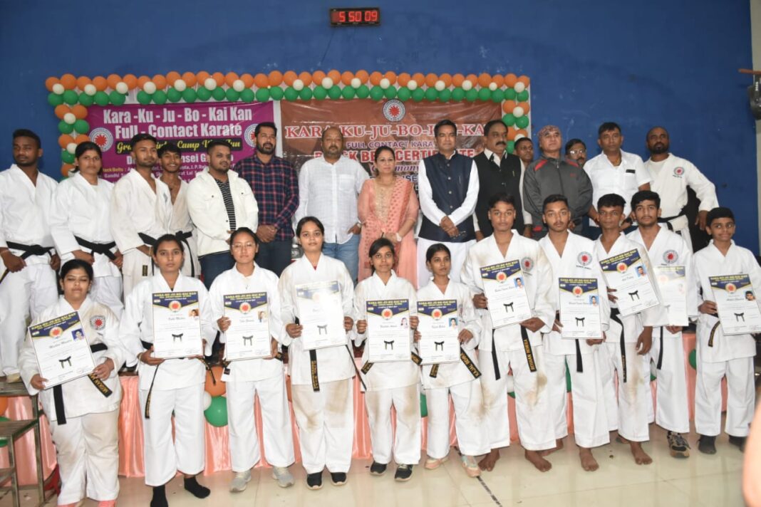 भिलाई : न्यूज़ 36 : मार्शल आर्ट्स की अग्रणी संस्था कारा-कु-जु-बो-काई-कान फुल कांटेक्ट कराटे-डो मार्शल आर्ट्स व योग एसोसियन छत्तीसगढ़ द्वारा संस्था के डायरेक्टर सेंसाई गिरीराव के मार्ग दर्शन में संस्था के समस्त ब्लैक बैल्ट प्रशिक्षिको द्वारा एक दिवसीय शीत कालीन शिविर का आयोजन शासकीय कन्या शाला वैशाली नगर, भिलाई में किया गया । जिसमे वैशाली नगर, भिलाई नगर, दुर्ग ग्रामीण, अहिवारा, चारो विधान सभा क्षेत्र के लगभग 350 खिलाड़ियों ने हिस्सा लिया जिसमे सबसे बड़ी संख्या वैशाली नगर विधान सभा क्षेत्र के खिलाड़ियों की थी। शिविर का उद्घाटन साडा के पूर्व उपाध्यक्ष बृजमोहन सिंह, भिलाई नगर निगम के सभापति बंटी गिरवर साहू, भिलाई नगर निगम जोन 2 के अध्यक्ष रामानन्द मौर्य व समाज सेवी उमेश सिंह ने किया।