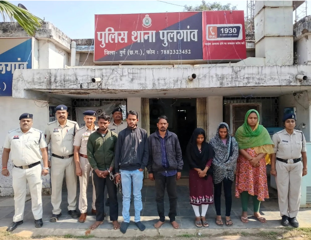 गिरफ्त्तार आरोपी : 1. टीकाराम पाटले उम्र 35 वर्ष ग्राम लोरमी जिला मुंगेली, 2. आकाश नायक उम्र 30 वर्ष ग्राम बसना जिला महासमुंद, 3. ओम प्रकाश कोसरे उम्र 21 वर्ष बजरंग नगर उरला, 4. आर्या गोस्वामी उम्र 25 वर्ष साकिन दल्लीराजहरा जिला बालोद, 5. रेशमा वर्मा 25 साकिन आदित्य नगर दुर्ग थाना मोहन नगर, 6. अंकिता पासवन उम्र 22 वर्ष ग्राम कोसा नगर सुपेला