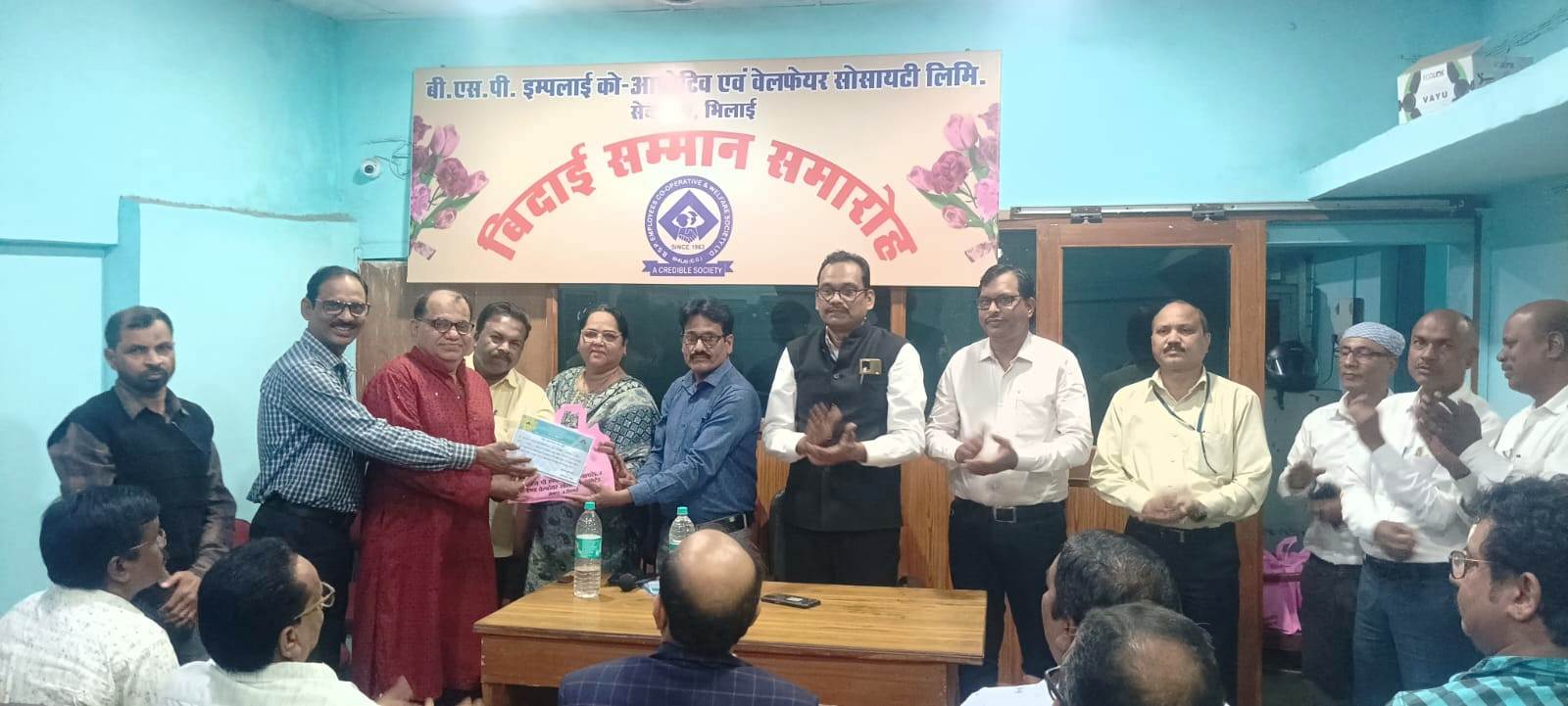 भिलाई : न्यूूूज़ 36 : बीएसपी एम्पलाइज कोऑपरेटिव एंड वेलफेयर सोसाइटी लिमिटेड सेक्टर-4 ने एक समारोह में जनवरी 2024 में भिलाई स्टील प्लांट की सेवा से निवृत्त हुए अपने सदस्य कर्मियों को ससम्मान विदाई दी। इन रिटायर कर्मियों को अध्यक्ष अशोक परगनिहा व पदाधिकारियों ने सम्मान पत्र, मिठाई, श्रीफल व अंतिम भुगतान का चेक प्रदान कर उन्हें भविष्य की शुभकामनाएं दी।