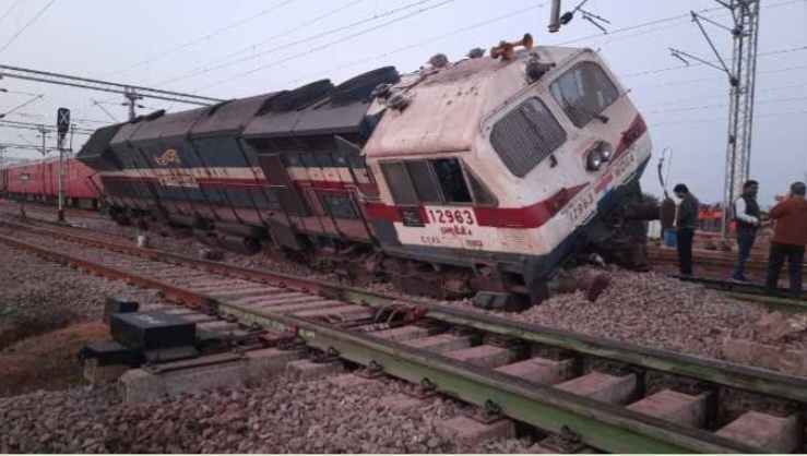 पैसेंजर ट्रेन के यात्री परेशान,मालगाड़ी का इंजन हुआ डिरेल
