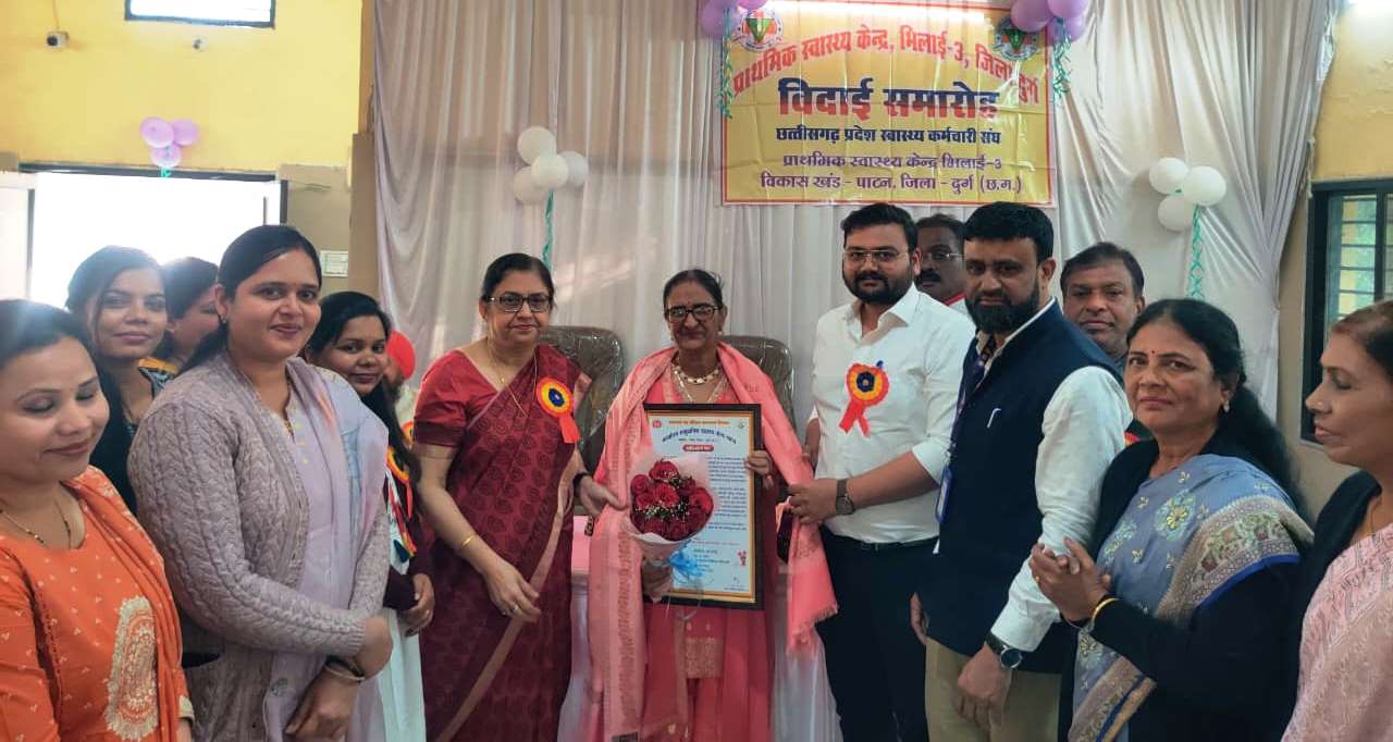 भिलाई : न्यूज़ 36 : प्राथमिक स्वास्थ्य केंद्र भिलाई 3 में पदस्थ नेत्र चिकित्सा सहायक अधिकारी श्रीमती जसविंदर कौर विरदी की सेवानिवृत्ति पर प्राथमिक स्वास्थ्य केंद्र भिलाई 3 सभागार में विदाई समारोह आयोजित किया गया। मुख्य अतिथि जिला अंधत्व निवारण समिति की नोडल डॉ संगीता भाटिया थी। अध्यक्षता संस्था के प्रभारी डॉ शिखर अग्रवाल ने की। वहीं विशिष्ट अतिथि आयुष चिकित्सा अधिकारी डॉ अर्पिता शर्मा , डॉ नितिन कश्यप और सहायक नोडल अधिकारी अजय नायक थे। सभी अतिथियों ने श्रीमती जसविंदर कौर विरदी का सम्मान किया। श्रीमती विरदी ने इस सम्मान के लिए सभी का आभार जताया।