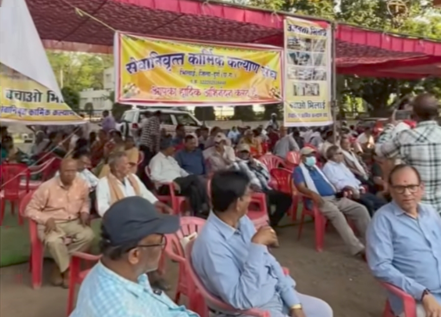 भिलाई : न्यूज़ 36 : शनिवार को सेवा निवृत कार्मिक कल्याण संघ के बैनर तले मुर्गा चौक पर एक दिवसीय धरना प्रदर्शन किया गया। इस दौरान रिटेंशनधारियों में भारी आक्रोश देखने को मिला। हजारों की संख्या में सेवानिवृत कर्मचारी धरने में शामिल हुए और प्रबंधन के खिलाफ जोरदार विरोध दर्ज कराया।