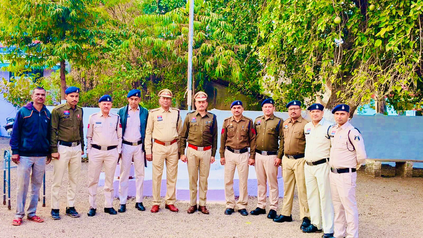 साजा(अभिषेक) : न्यूज़ 36 : थाना परिसर साजा में निरीक्षक सत्यप्रकाश उपाध्याय ने ध्वजारोहन किया वही थाना परिसर में परेड किया गया और मिठाई बाटकर 77 गणतंत्र दिवस की समस्त देशवासियों को बधाई दीं। कार्यक्रम में मुख्य रूप से प्र.आरक्षक शिवराज सिंह राजपूत गोकुल रामकुमार भारती एसआई सोनकर प्र.आरक्षक़ पवन सिंह, आरक्षक़ राजू यादव,रामानुज जैसवाल,गोलू पटेल, अर्जुन ध्रुव, इंदरमन निषाद उपस्थित रहे।