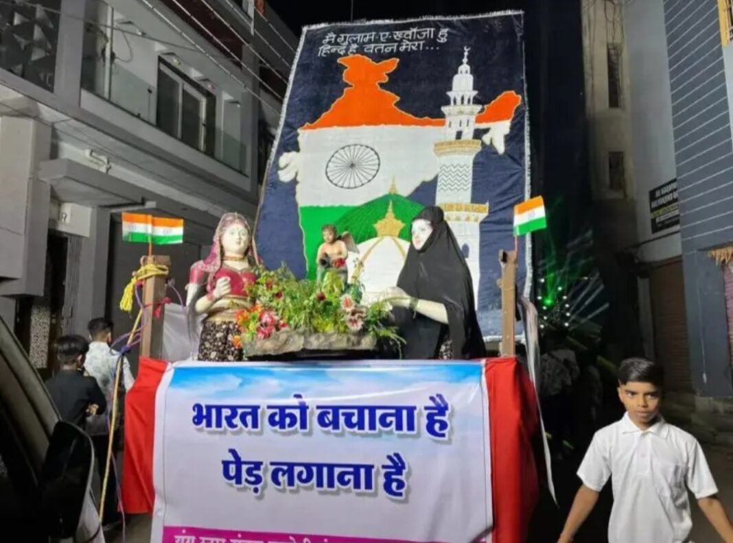 शब्बू पाकीजा ने बताया कि सत्तीचौरा से निकले संदल में परंपरानुसार यंग स्टार संदल कमेटी, सत्तीचौरा द्वारा आपसी भाईचारा के संदेश के साथ साथ इस वर्ष भारत बचाओ, पेड़ लगाओ की आकर्षक झांकी निकाली गई, जिसमें एक साथ दो संदेश दिया गया, पहला संदेश कौमी एकता का था जिसमें हिन्दू-मुस्लिम महिलाएं एक साथ बैठकर पेड़ लगा रहे है, दूसरा संदेश भारत देश बचाओ पेड़ लगाओ का था। झांकी में हिन्दू मुस्लिम महिलाओं द्वारा एक साथ बैठकर पर्यावरण बचाव के लिए पेड़ लगा रहे है साथ ही साथ पक्षी के रूप में परी पानी डाल रही है और पेड़ लगातर बढ़ रहा है। यंग स्टार संदल कमेटी द्वारा जुलूस के दौरान कई स्थानों आम नागरिकों को फल, फूल के पेड़ का वितरण किया गया, संदल कमेटी द्वारा लगभग 400 पौधे का वितरण भी किया गया।