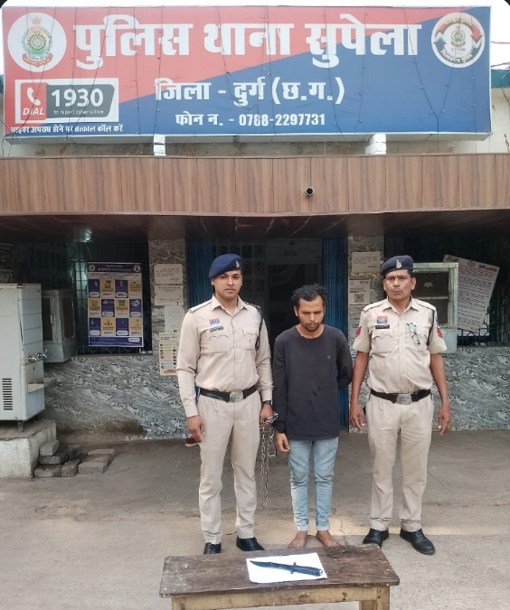 भिलाई : न्यूज 36 : सुपेला पुलिस को मंगलवार को मुखबिर से सूचना मिली कि जिम गार्डन, नेहरू नगर सुपेला के पास एक व्यक्ति अपने हाथ में धारदार हथियार लेकर आम लोगों को भयभीत कर रहा है। सूचना पर तत्काल पुलिस टीम द्वारा मौके पर पहुंचकर घेराबंदी कर आरोपित को पकड़ा गया। पूछताछ में आरोपित ने अपना नाम सिक्सत फुले (29) निवासी नेहरू नगर रेशमी आवास सुपेला बताया। पुलिस ने आरोपित के कब्जे से एक धारदार हथियार बरामद किया। पुलिस ने आरोपित सिक्सत फुले के खिलाफ अपराध पंजीबद्ध कर उसे गिरफ्तार कर लिया।