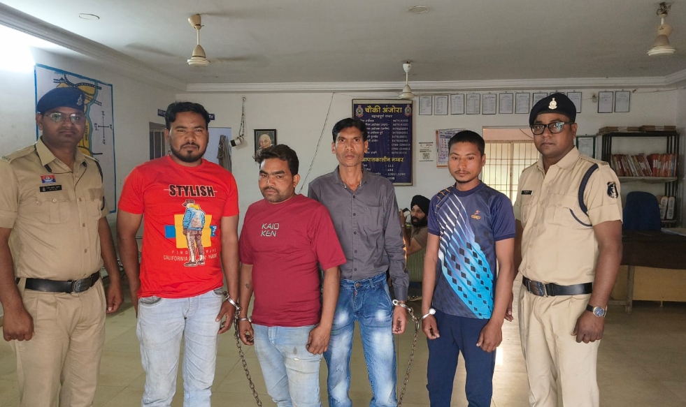 दुर्ग : न्यूज़ 36 : पुलिस अधिकारी का प्रतिरूप धारण कर फोन करने एवं शासकीय कार्य में बाधा डालने वाले चार आरोपी को पुलगांव पुलिस ने गिरफ्तार किया है। शराब के नशे में वाहन चलाते पाए जाने पर मोटर यान अधिनियम के तहत भी कार्रवाई की गई है। पुलिस ने बताया कि आरोपीयों ने मोबाइल में पुलिस चौकी का डीपी लगाकर कॉल कर भ्रम उत्पन्न किया था वहीं नशे की हालत में थाने में उपस्थित होकर विवाद भी किया। पुलिस ने बताया कि आवेदक अजय बहादुर निवासी सोहम सिटी महमरा ने रिपोर्ट दर्ज कराई थी कि उधारी राशि मांगने के विवाद को लेकर अनावेदक छतर सिंह उर्फ राजू देश लहरे द्वारा अपने मोबाइल नंबर में पुलिस चौकी अंजोरा का डीपी लगाकर कॉल किया गया, जिससे पुलिस अधिकारी होने का भ्रम उत्पन्न हुआ था। अनावेदक के थाना उपस्थित होने पर संबंधित पक्ष के चार व्यक्ति थाना पुलगांव आए जो शराब के नशे की अवस्था में थे। आरोपियों द्वारा थाना परिसर में विवाद एवं झगड़ा कर शांति भंग की गई थी। पुलिस ने आरोपी खिलेश्वर रजक, तोमर निषाद, चेतन राम साहू निवासी ग्राम सकरा थाना सोमनी जिला राजनांदगांव, छतर सिंह उर्फ राजू देश लहरे निवासी ग्राम तनोट चौकी अंजोरा थाना पुलगांव को गिरफ्तार किया। उनके पास से एक चार पहिया वाहन एवं मोबाइल फोन जब्त किए गए।