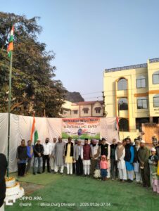 भिलाई न्यूज़ 36 : जामा मस्जिद मुस्लिम कम्युनिटी हॉल सेक्टर 6, के सामने सुबह 7 बजे तिरंगा झंडा फहराया गया। राष्ट्रगीत एवं देशभक्ति गीतों के बाद, स्वतंत्रता सेनानियों के बलिदान को याद किया गया। इस दौरान  संविधान की महत्ता बताई गई। देश भक्ति के नारों के साथ राष्ट्र हित/राष्ट्र निर्माण के लिए उपस्थित जनों को प्रेरित किया गया। आयोजन में हाफिज इकबाल अंजुम इमाम ओ खतीब जामा मस्जिद  भिलाई,एम आसिम बेग अध्यक्ष भिलाई नगर मस्जिद ट्रस्ट, सेक्रेटरी सैय्यद, अब्दुल हफीज़, सैय्यद आतिफ अली, तहूर पवार,हमीदुल्लाह सिद्दीकी, जमील कुरैशी, वजी अहमद,जफर जावेद, मुर्तुजा हुसैन,असदुद्दीन हैदर, अलीम सिद्दीकी, शाहिद खान, शेख वहीद,शमशेर खान, अब्दुल ज़ाकिर खान, अब्दुल कलाम खान, अरमान बेग,रकीब बेग, फ़राज़  अहमद,अज़हर रोमी,शमीम अहमद, मो .इब्राहिम,एजाज परवेज़,इमरान खान, निजामुद्दीन खान, अनवर  मोअज्जिन,शमीम सिद्दीकी, जुल्फिकार अली, ज़मीर अहमद, जमील, अशरफ बेग, शेख, साहिल और फैजान सहित कई गणमान्य नागरिक उपस्थित थे।