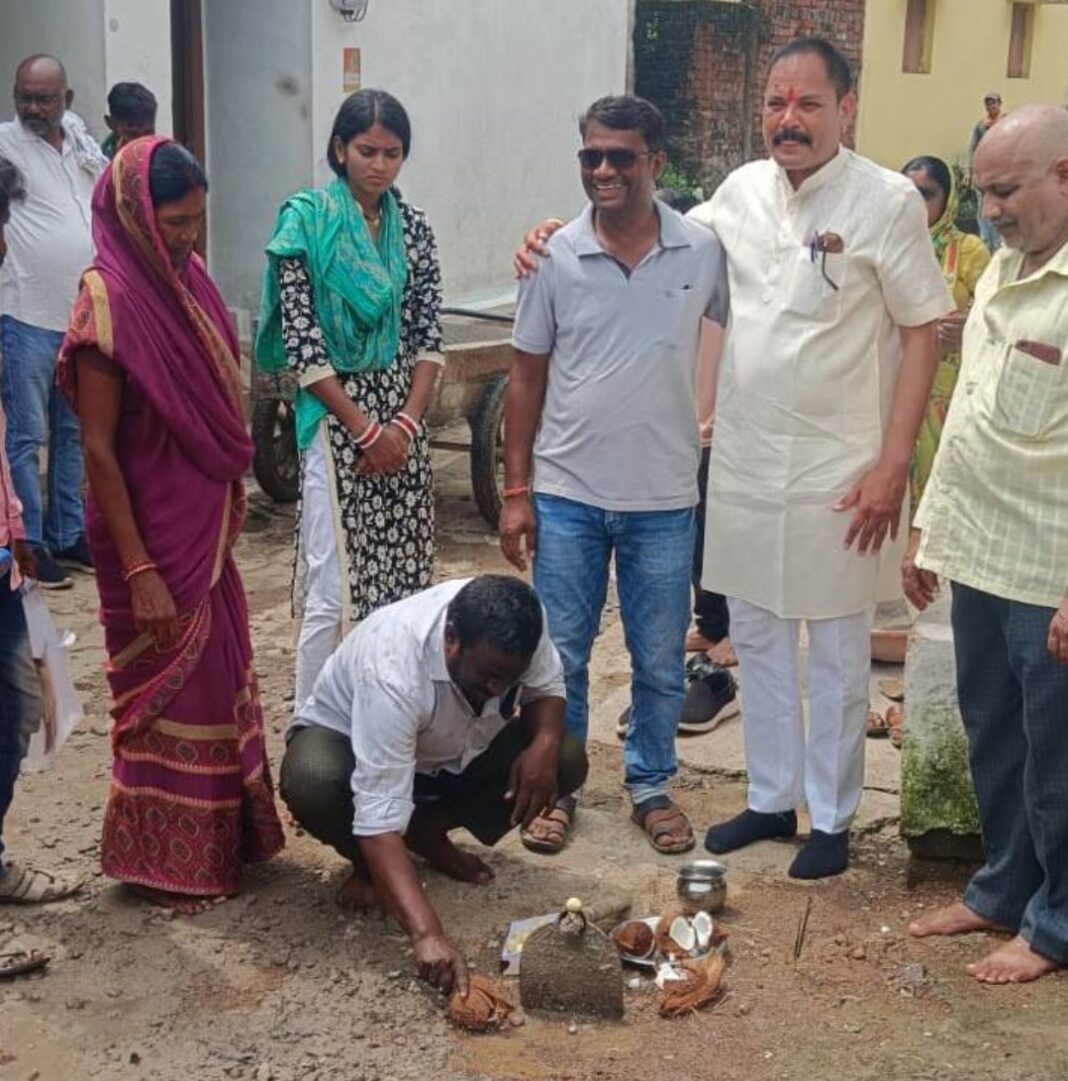 जामुल : न्यूज़ 36 : नगर पालिका परिषद जामुल में अनेकों विकास कार्य जारी है इसी तारतम्य में नपा अध्यक्ष ईश्वर सिंह ठाकुर ने वार्ड क्र. 06 में पांच लाख रूपये के लागत से सीमेंटीकरण कार्य का भूमि पूजन किया।भूमि पूजन अवसर पर नपा अध्यक्ष ठाकुर ने कहा कि हमारे जामुल नगर पालिका में बहुत ही बड़े बड़े विकास के कार्य हो रहे हैं और हमारे परिषद के सभी सम्मानीय सदस्यों की सहमति एवं आम जनता की भावना अनुरूप लगभग सभी कार्य हो रहे हैं। वास्तविक रूप से जमीन पर कार्य हो जिसका मुल्यांकन स्वयं जनता करें और जनता संतुष्ट हो वही वास्तविक विकास है। मैं वार्ड 06 के समस्त वार्ड वासियों को बधाई देता हूं कि उनकी मांग के अनुरूप उनके वार्ड में आज पांच लाख रूपये की लागत से सीमेंटीकृत मार्ग बनना प्रारंभ हो गया है। जिसका शीघ्र लाभ आप सबको मिलेगा और मैं आप सभी जनता जनार्दन से यही आशा करता हूं कि ऐसे ही विकास कार्यों के लिए आप सबका सहयोग एवं सुझाव हमेशा मिलता रहेगा। भूमि पूजन अवसर पर वार्ड पार्षद संजय देशलहरे, पार्षद रामदुलार साहू, अध्यक्ष प्रतिनिधी विशेश्वर वर्मा वार्ड वासी दुर्योधन साहू, देवकी लहरे, कौशिल्या देशलहरे, गिरधर भारती, छोटकु भारती, बड़कु भारती सहित नागरिकगण उपस्थित थे।