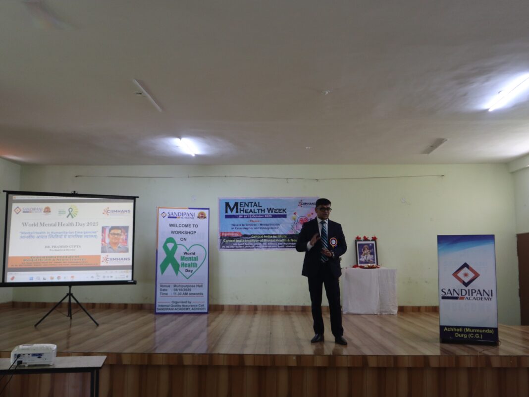 भिलाई : न्यूज़ 36 : सांदीपनी एकेडमी, अछोटी में 08 अक्टूबर 2025 को विश्व मानसिक स्वास्थ्य दिवस के उपलक्ष्य में आंतरिक गुणवत्ता आश्वासन प्रकोष्ठ (IQAC) एवं राष्ट्रीय सेवा योजना (NSS) इकाई के संयुक्त तत्वावधान में एक सार्थक कार्यशाला का आयोजन किया गया।
