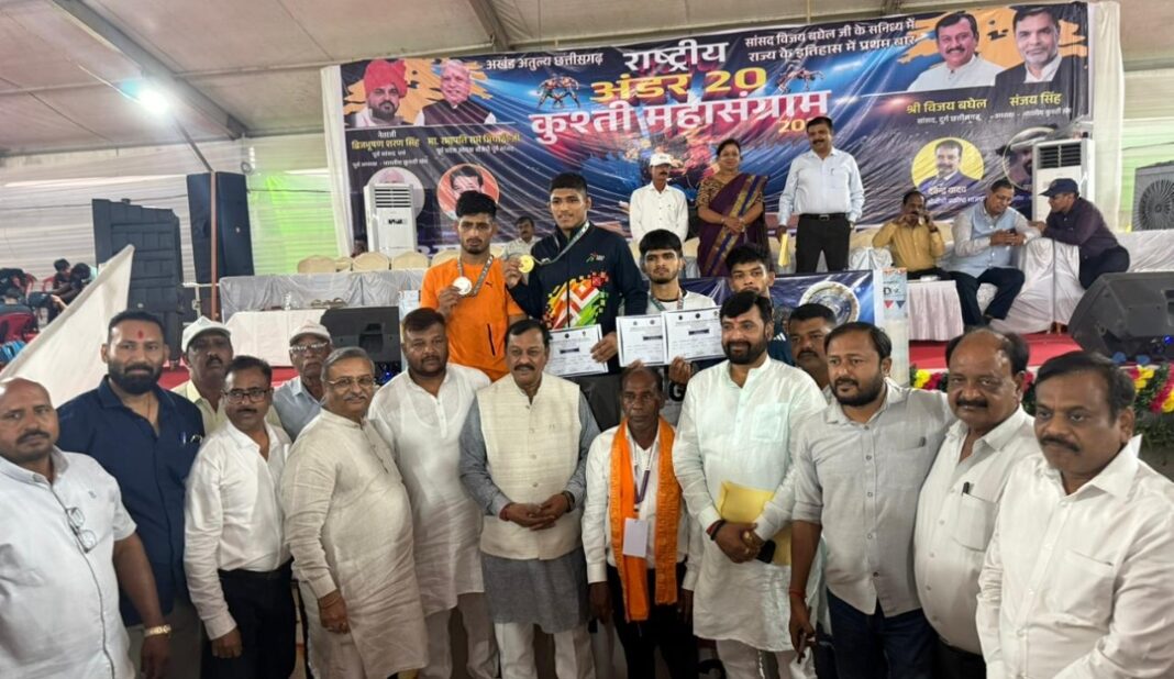 भिलाई : न्यूज़ 36 : दुर्ग सांसद विजय बघेल के नेतृत्व एवं मार्गदर्शन में प्रथम बार आयोजित अंडर 20 कुश्ती का महासंग्राम रोमांचक होता जा रहा है। रोजाना बड़ी तादाद में मौजूद खेल प्रेमियों के बीच देश भर के पहलवान कुश्ती के दावपेंच आजमा रहे हैं।